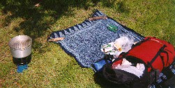 Op maandag 19 juli 2004 scheen de zon al om zeven uur. Vandaag wilde ik wel even wachten tot de tent droog was. Het scheelt toch in het gewicht en ik moest ook nog boodschappen halen: AA, krentebollen, paprika, vlees, kaas en cruesli. Een halve liter water, een zakje Elk en een halve zak cruesli is een goed ontbijt. Maar dat betekent wel dat je na twee dagen weer nieuwe cruesli moet kopen.