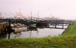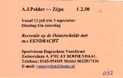 Vrijdag 23 juli 2004 zou een makkie worden omdat ik de 20 km op St.Philipsland kon afleggen tussen 10:00 en 16:00. De drie kilometer heen en weer naar de pont kon ik rustig aan doen. Ruim op tijd voor de pont van 9:30 was ik op de kade. Het cafe ging pas om 12:00 open zodat ik me met mijn eigen drinken moest behelpen. Om half tien was er nog geen pont te bekennen. Net toen ik op het punt stond te gaan bellen kwam hij tussen de andere boten vandaan. Direct was het druk op de steiger want een groep van 26 fietsers diende zich aan. Het afmeren duurde wat langer dan normaal maar dat mocht de pret niet drukken. Door de hoge waterstand was het verschil tussen boot en steiger nog al groot en het leek niet eenvoudig om aan boord te komen. Nadat de pont lag afgemeerd nam ik een flinke stap en was aan boord. De fietsers zagen dit echter niet zitten. Maar wat zij, en ik ook niet, wisten was de aanwezigheid van een loopplank waarmee je zonder moeite aan boord kunt komen. Hoe we ook wenkten, de fietsers kwamen niet terug en zijn vermoedelijk naar de andere kant gefietst. Ik had daardoor een rustige privé-overtocht.