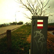 Het langeafstandswandelpad Het langeafstandswandelpad is wel heel lang, maar wat zou dat? Koop een handig boek met de route en de kaart. En in het veld, staan er tekens op gesteld ![]() ![]() Een lange afstandswandelpad wordt gemarkeerd, ja wist u dat, door wit en rood op een boom of op een schuur, of op een paal, of een lelijk stukje muur ![]() ![]() ![]() Het basisteken, wit en rood, is 7 bij 9 centimeter groot. Het wijst de weg, waar u kwam of gaat, dus draai niet om voor u verder gaat ![]() ![]() Een dubbel teken dat geeft aan u moet hier zo de bocht om gaan. Is het links of rechts dat zegt het niet. Dat hangt er maar van af wat u verder ziet. ![]() ![]() Een kruis van rood en wit op hout, als u dat volgt dan gaat u fout. Is er geen basisteken in de buurt, ga dan rechtdoor voor zolang het duurt. ![]() ![]() Het Deltapad, het Duin- en Polderpad, Het Visserspad, het Zevenwoudenpad, Het meest bekend van allemaal, dat is en blijft het Pieterpad. Copyright 2002 Johan van Slageren |